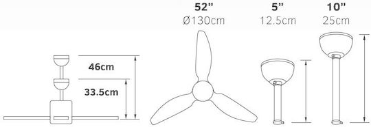 Ανεμιστήρας Οροφής Φ130 DC 40W 02-00164 LED Etesian Λευκό