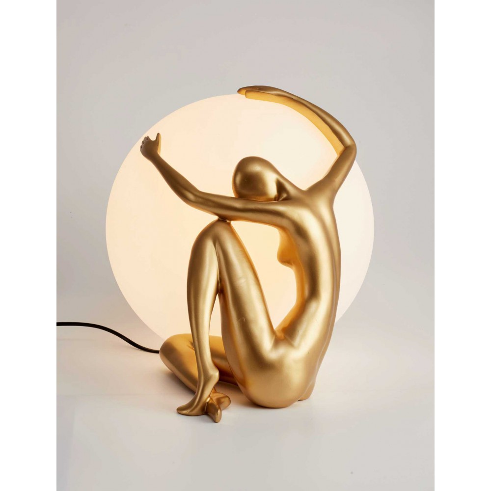 Επιτραπέζιο διακοσμητικό φωτιστικό της Lucido, σε χρυσό χρώμα. Διαθέτει ανταλλάξιμο λαμπτήρα συμβατό με ντουί E27.