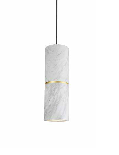 Μοντέρνο κρεμαστό φωτιστικό με λευκό κυλινδρικό σώμα σε απομίμηση μαρμάρου λευκού.  Μοναδική διαχρονική επιλογή για νησίδες, πάγκους ακόμη και για κομοδίνα υπνοδωματίων (bedside).  Minimal αποχρώσεις και κομψός σχεδιασμός. Διαθέτει ντουί Gu10
