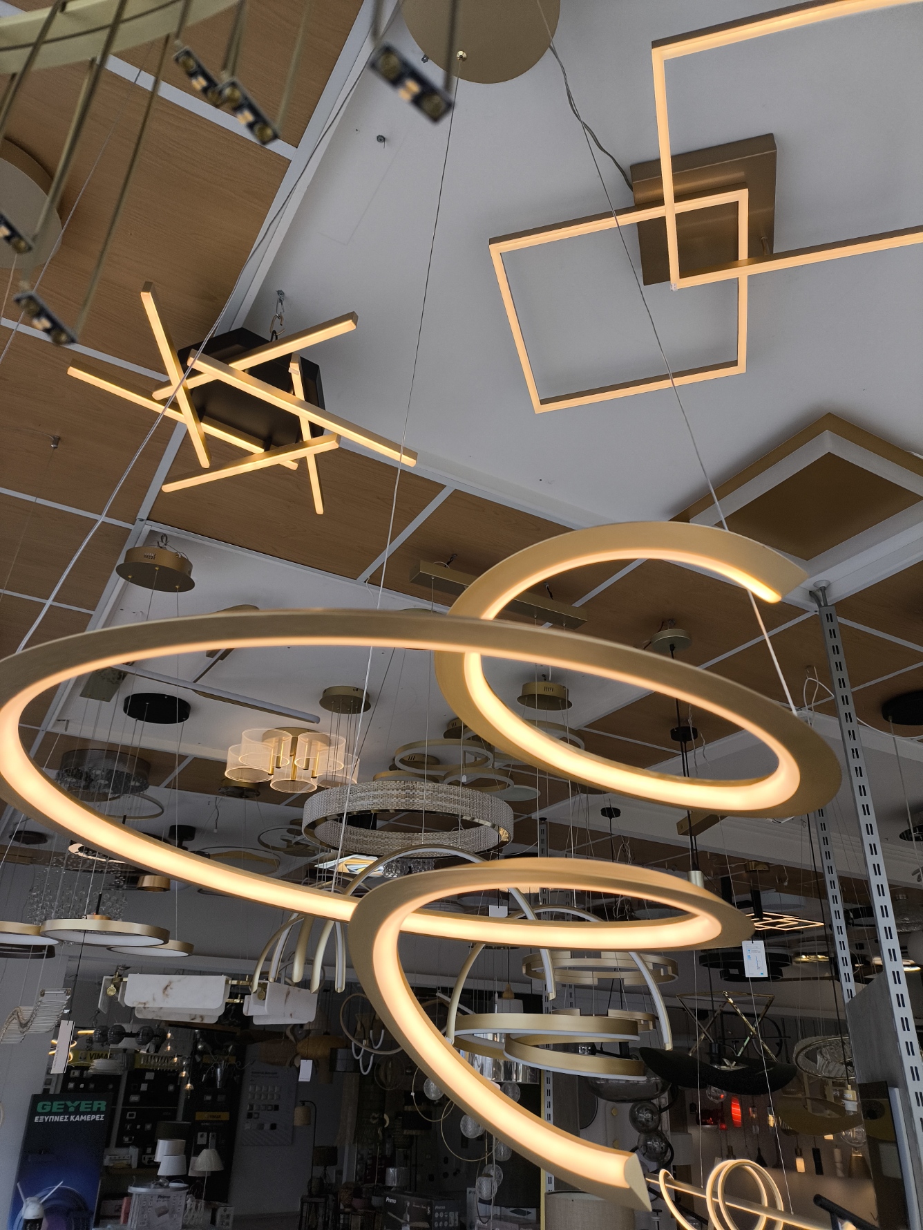 Πολύφωτο κρεμαστό φωτιστικό LED κατασκευασμένο από αλουμίνιο σε χρυσό χρώμα.