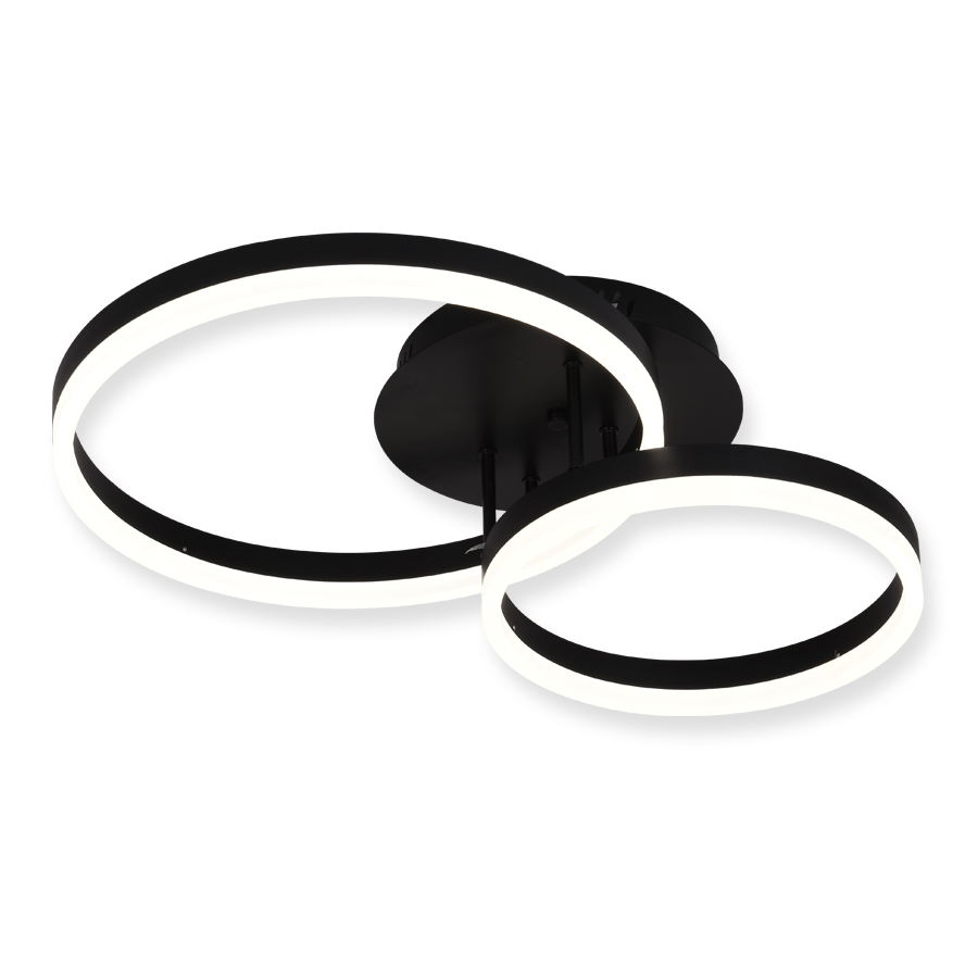 Φωτιστικό LED οροφής σε μαύρο ματ με τηλεχειριστήριο κατασκευασμένο από αλουμίνιο και ακρυλικό με dimmer, εναλλαγή θερμοκρασίας χρώματος 3000k-6000k και night mode.